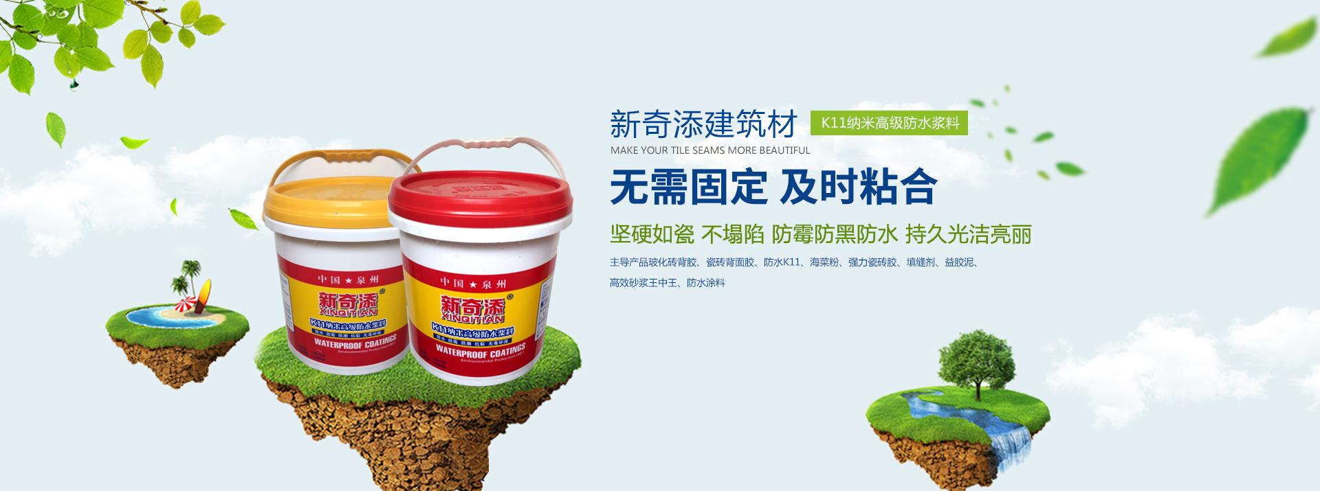 泉州市新奇添建筑材料有限公司成立于2010年,注冊資金500萬元,是一家專業從事高端防水材料、新型墻體材料、建筑材料設備的研發、生產和銷售的新興高科技企業。公司人員組成,以高、中級專業人才為主體。其高科技含量達國內外同行業先進水平,在所涉領域具備強大的科技優勢與核心競爭力。公司憑借強大的研發能力和成熟的高科技產品,在綠色環保建材領域異軍突起。